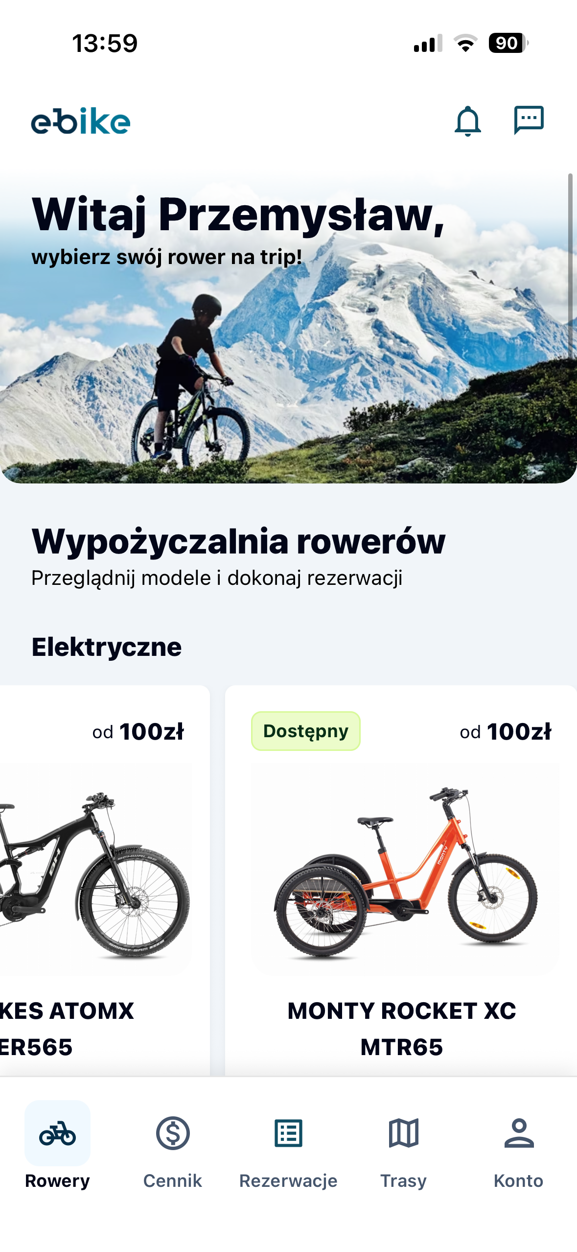 Aplikacja umożliwia wygodne rezerwowanie rowerów, sprawdzanie dostępności modeli oraz zarządzanie wypożyczeniami bez konieczności kontaktu telefonicznego.